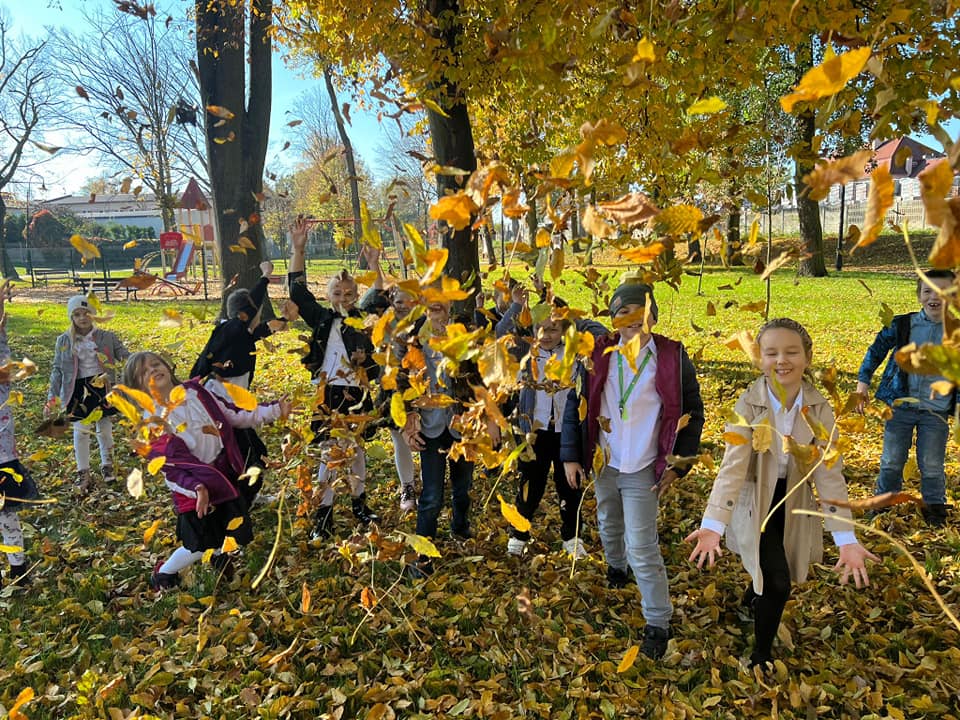 Piękna, jesienna pogoda sprzyja zajęciom na dworze. Uczniowie klasy II D mieli przyjemność czytać lekturę w parku, wśród złotej polskiej
