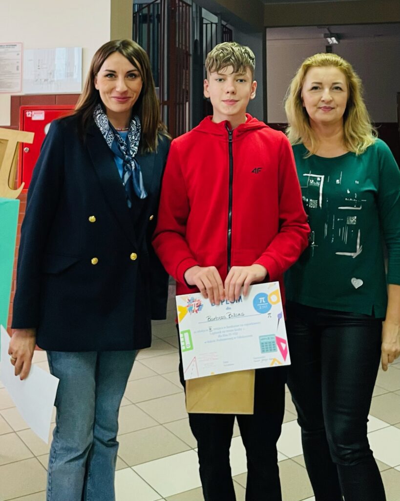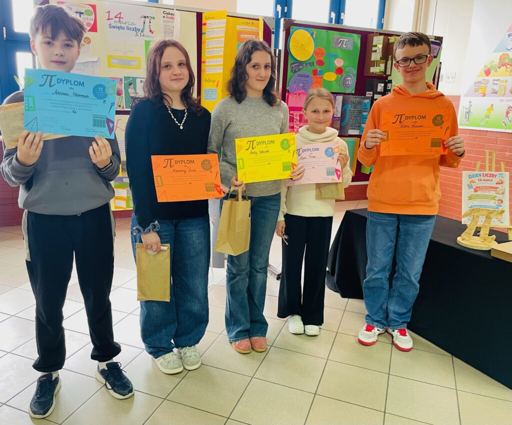 Dzień Liczby π w naszej szkole! Z okazji Dnia Liczby Pi, który obchodzimy 14 marca, w miniony piątek w naszej szkole odbywały się tematyczne lekcje matematyki poświęcone tej niezwykłej liczbie. Uczniowie poznawali ciekawostki, rozwiązywali zagadki oraz odkrywali, gdzie liczba π pojawia się w matematyce i w życiu codziennym. Jednym z wydarzeń było bicie szkolnego rekordu w zapamiętywaniu cyfr rozwinięcia dziesiętnego liczby π. Uczniowie zmierzyli się z trudnym wyzwaniem i pokazali niesamowitą pamięć! 🥇 Najwięcej cyfr – aż 149 – wyrecytowała Marta Sobczak z klasy 6c. Kolejne wyniki: • Maria Franc – 74 cyfry • Piotr Płokarz – 72 cyfry • ponad 60 cyfr wyrecytowali również: Konstancja Panek oraz Adrian Staroń. Bardzo nas cieszy, że tak wiele osób podjęło się tego wyzwania, sprawdzając swoją pamięć oraz poszerzając wiedzę na temat liczby π. Drugim konkursem z okazji tego matematycznego święta był konkurs na najciekawszy lapbook o liczbie π. Pomysłowość, forma oraz staranność wykonania prac naprawdę nas zachwyciły! 🏆 Wyniki konkursu: 🥇 I miejsce – Kornelia Czołnij 🥈 II miejsce – Anna Nowa 🥉 III miejsce – Bartosz Bilan 👏 Serdecznie gratulujemy wszystkim uczestnikom i zwycięzcom! Dziękujemy za zaangażowanie i wspólne świętowanie Dnia Liczby π w naszej szkole.