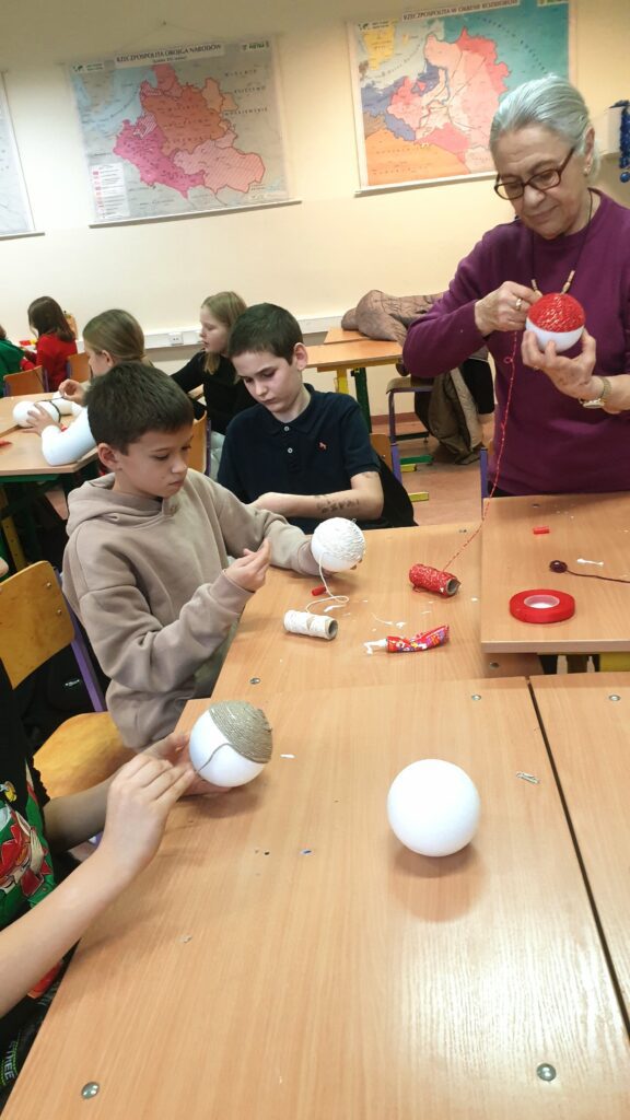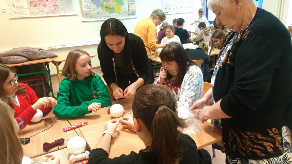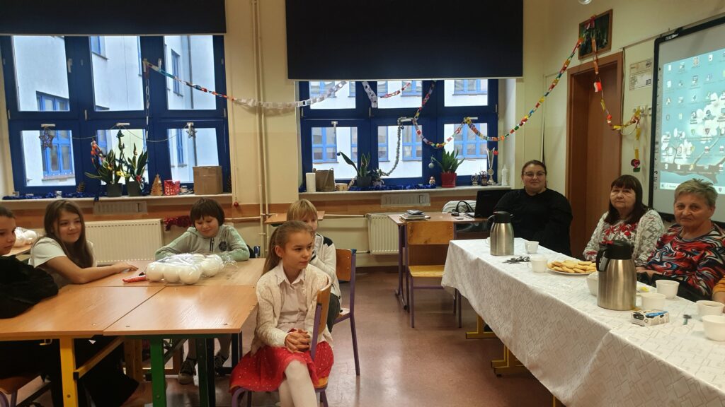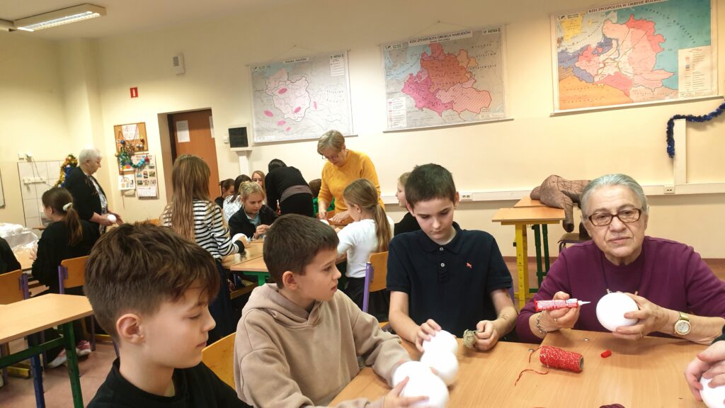 12 grudnia 2024 r. w naszej szkole odbyło się spotkanie uczniów z klasy IVc z seniorami, którzy przybyli do nas z Dziennego Domu Seniora w Odolanowie. W czasie spotkania uczniowie mieli okazję dowiedzieć się, jak kiedyś spędzano Święta, a także wspólnie z seniorami wykonali świąteczne ozdoby. Spotkanie przebiegało w bardzo miłej, radosnej atmosferze, pełnej ciepła i serdeczności.
