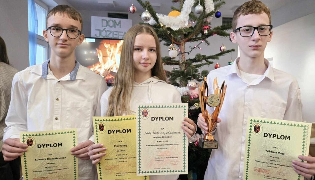 Z radością informujemy, że w dniu 12 grudnia 2024 r. nasi uczniowie wzięli udział w XXII edycji Międzyszkolnego Konkursu Matematycznego organizowanego przez Liceum Ogólnokształcące im. Władysława Jagiełły w Odolanowie i zdobyli drużynowo III miejsce!