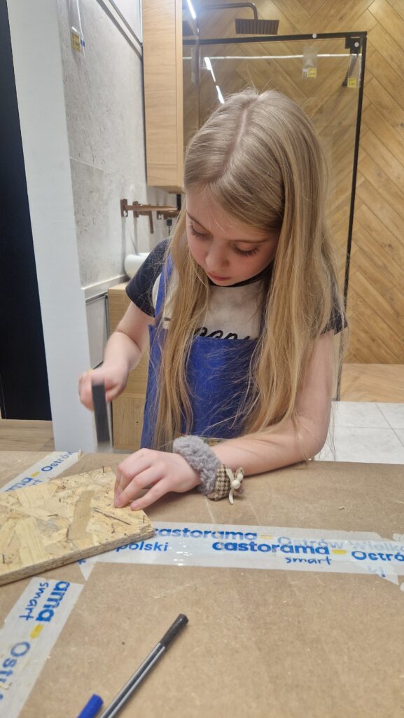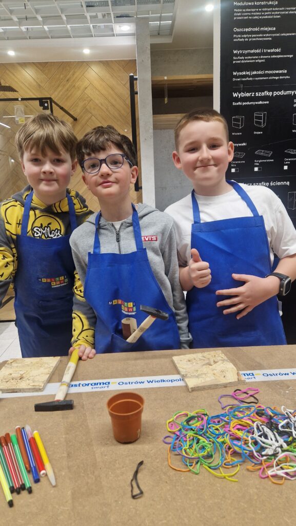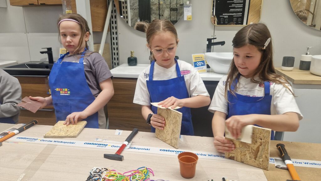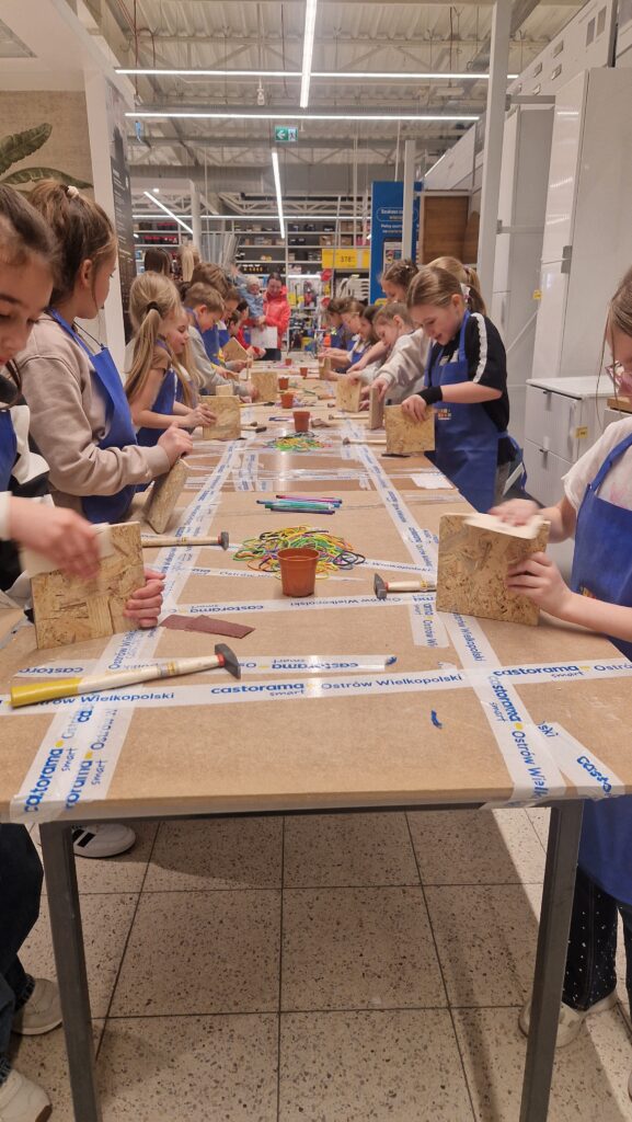 Klasa 2c miała okazję wziąć udział w wyjątkowych warsztatach Majsterkowo, organizowanych przez Castoramę. Podczas zajęć uczniowie zamienili się w prawdziwych młodych majsterkowiczów. Korzystając z papieru ściernego, młotków i gwoździ, stworzyli własne gry.