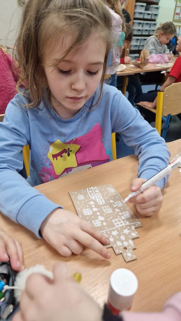 Dzieci z wielkim zaangażowaniem i entuzjazmem przystąpiły do pracy, czego efektem są wyjątkowe dekoracje, które z pewnością ozdobią domy podczas zbliżających się Świąt Bożego Narodzenia.