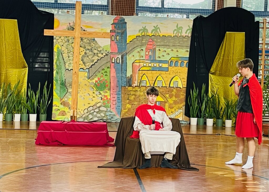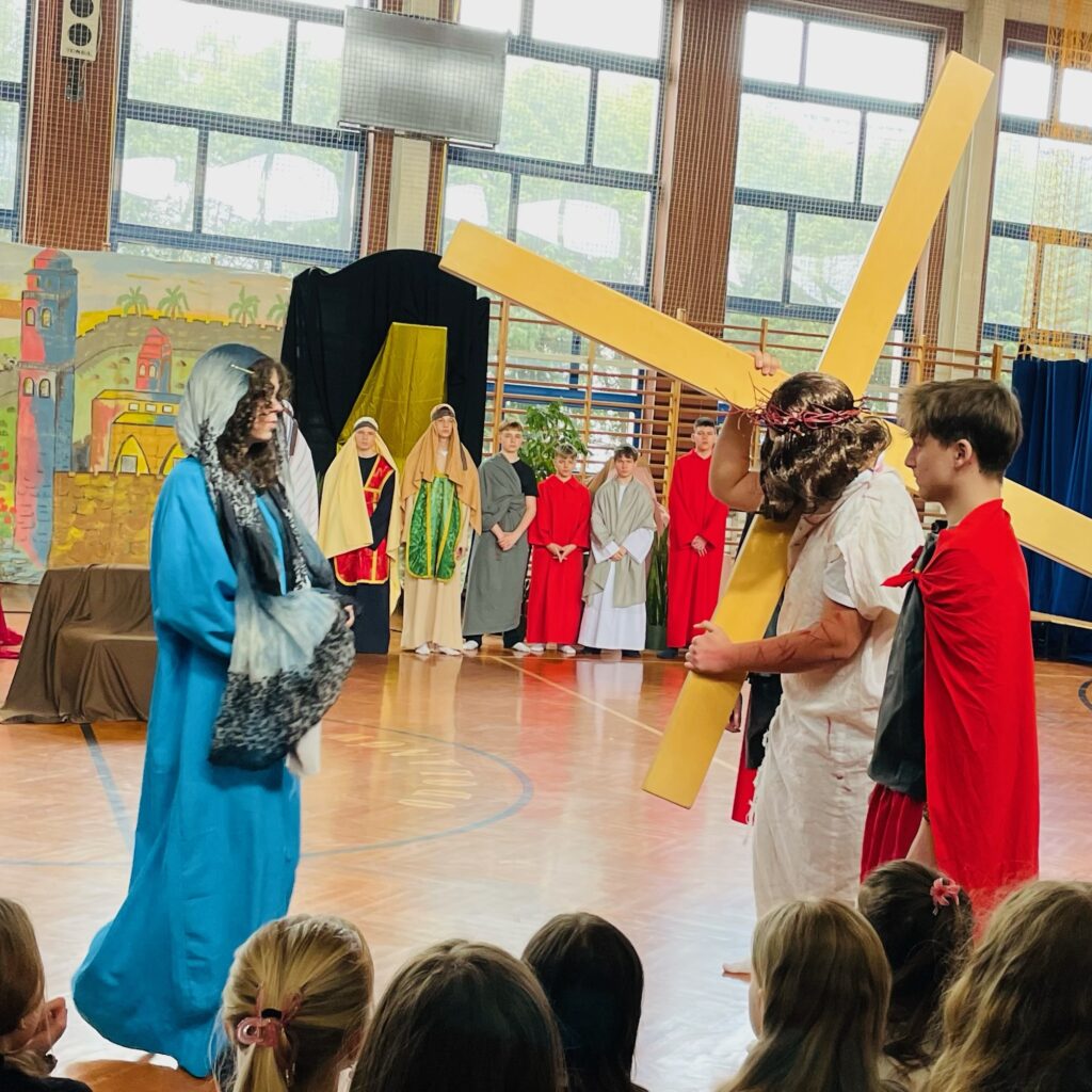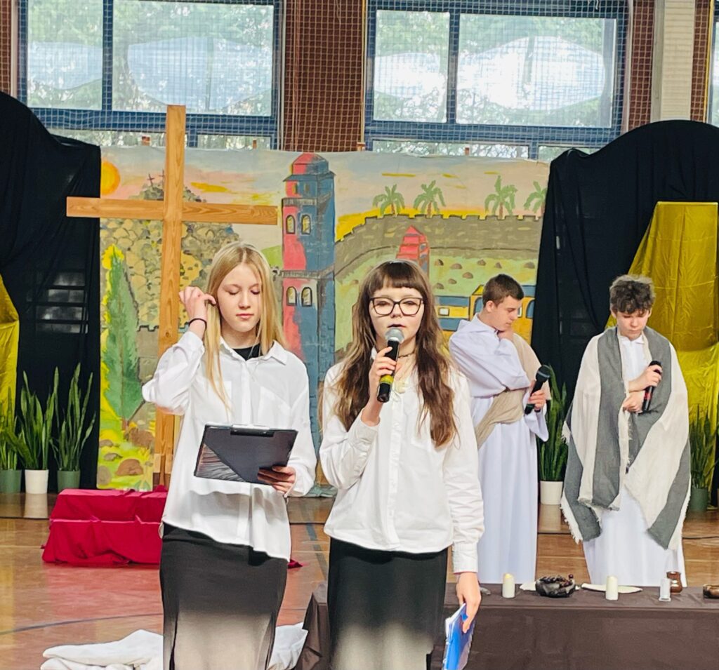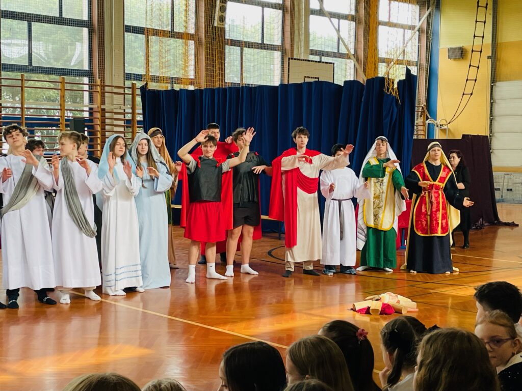 26 marca w naszej szkole poczuliśmy już prawdziwy wielkanocny klimat. Tego dnia odbyło się wyjątkowe przedstawienie ukazujące Mękę Pańską, które wprowadziło nas w atmosferę refleksji i zadumy. Do południa spektakl mogli obejrzeć uczniowie, natomiast po południu zaprosiliśmy mieszkańców – była to także doskonała okazja, by odwiedzić nasz wielkanocny kiermasz. 🌿 Dziękujemy wszystkim za obecność i wspólne przeżywanie tego wyjątkowego czasu.