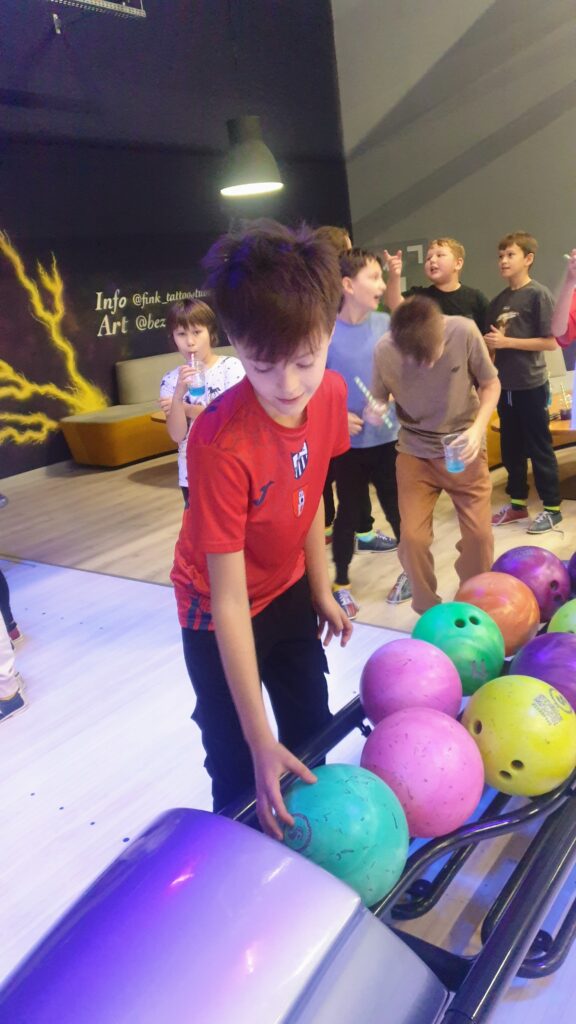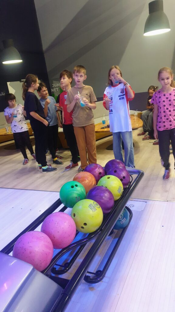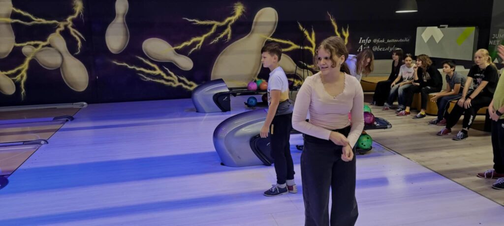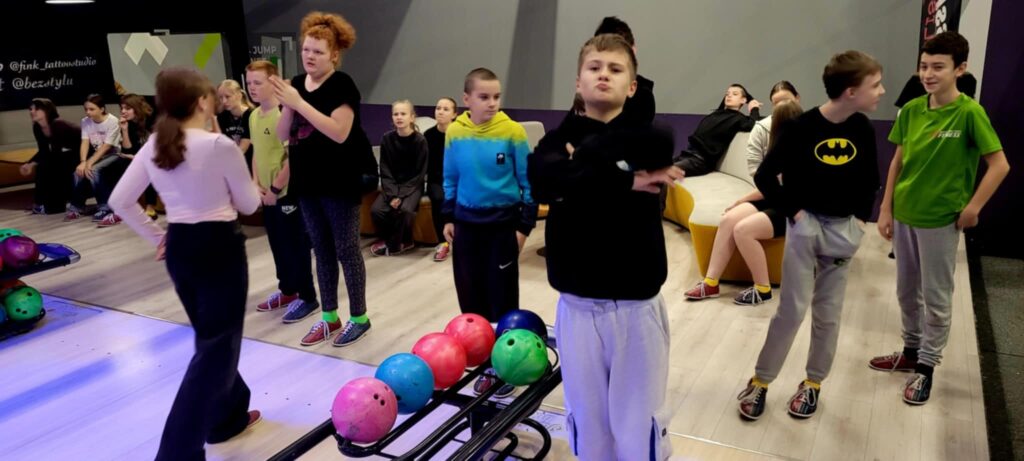 Uczniowie świetnie się bawili w czasie zajęć na trampolinach oraz rywalizowali ze sobą na kręgielni.